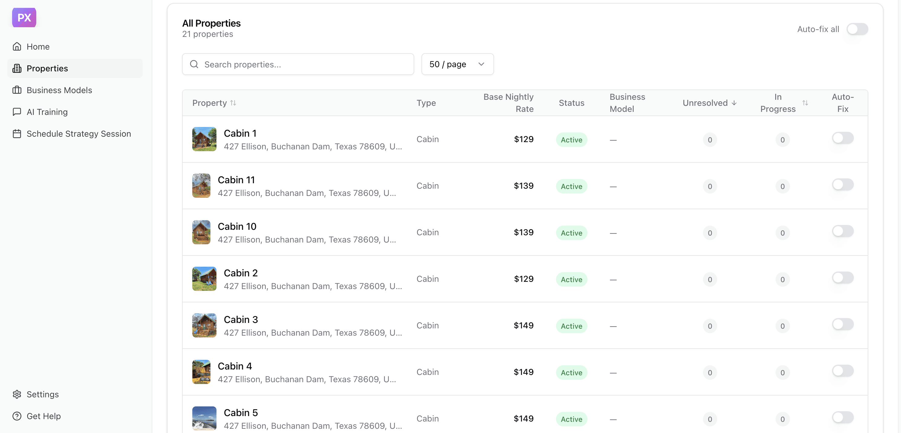 Peak weekends used to sell too cheap, and weekdays sat empty. PX raised rates on high-demand nights and reduced gaps with smarter positioning in search. Turnovers are smoother too, cleanings and maintenance get dispatched automatically.